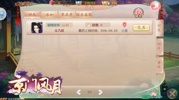 《京门风月》手游是由玩友时代研发,好玩友独家发行的女性古风定制手游。游戏根据同名小说改编,完美的还原了小说中各种惊险却不见硝烟的权利斗争。开放式的剧情故事,执掌朝堂,定制属于你的京门风月;社会化的家族社交,建设属于你的私密闺蜜圈;首创NPC实时交互玩法,与京门帅哥美女相爱相杀的同时获取神秘技能加入战斗,瞬间扭转乾坤;皇权争夺暗卫培养,暗黑势力为你所用,朝廷关系由你命定乾坤。美人权谋搅动乱世风云,家族暗斗掀起古代冰火之歌。
