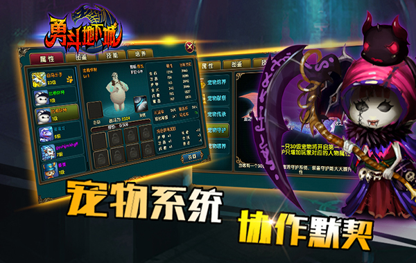 玩家收集到对应数量的宠物碎片就能合成对应的宠物。宠物有一个主动技能的格,能装卸各类主动技能。但只能同时存在一个主动技能。宠物有8个被动技能的格,能装卸各类被动技能。但只能同时存在8个被动技能。且宠物各式各样,符合各种玩家不同的审美观,有女性喜欢的萌萌哒,和男生喜欢勇猛的野兽,任君选择。