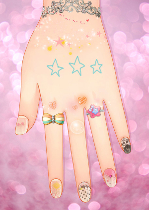指尖的巴啦啦魔法与手背上三个调皮的五角星尽显可爱。
