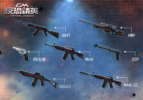 枪战游戏中,武器是最为重要的元素。不出意外的话,这次枪支更新定然会不负众望的。全新的血影系列枪支(AK47, M4A1, M4A1-SS, SIG552,AWP),绝对视觉和枪感的全新体验。当然不能不提的还有两把手枪,R8左轮、USP消音手枪。(尤其是R8左轮,号称手枪王者,伤害恐怖,枪枪入肉,别管有没有穿防弹甲,一击爆杀!谁用谁知道!)5月19日我们拭目以待吧!