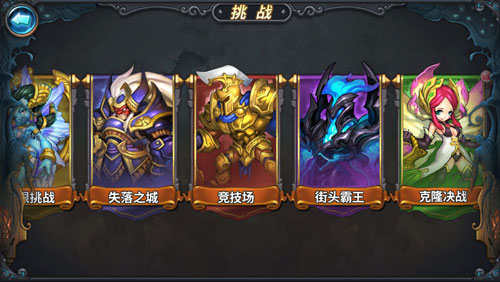 《圣魂》中还有多个玩法迥异的副本,挑战模式中就有五大副本:指导玩家的极限挑战、刷取材料的失落之城、切磋pk的竞技场、轮番血战的街头霸王,以及组队对抗使用相同英雄队伍的克隆决战。
