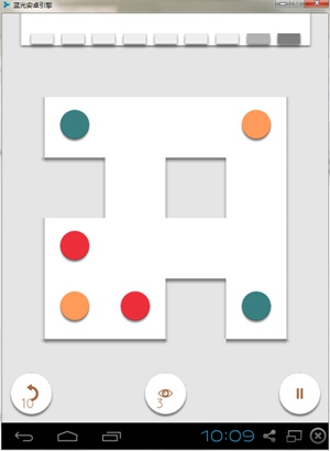 比较有趣的是当玩家在滑动一个小球时整个屏幕内的小球都会同向移动,因此玩家想要通关还得合理利用地形,在游戏的最上方玩家可以看到从白到灰再到黑的方块,玩家每次移动均会消耗掉一快,而通关后游戏会根据步数所停留的方块颜色给出1-3星的打分。游戏通关简单,但满分通关还是要动点脑筋的。